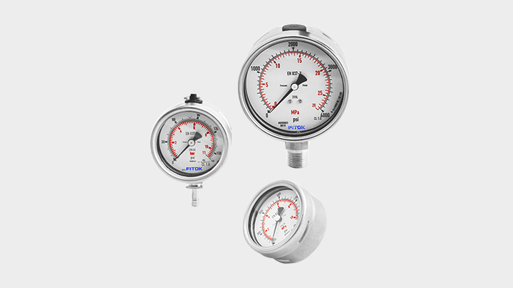GA 系列全不锈钢压力表广泛用于石油、化工、冶金、矿山、地面工程机械设备等。可选充油型,适用于动态压力和震动场合,有助于吸收振动和压力峰值,同时延长压力表的使用寿命。316 不锈钢材质可应用于最具腐蚀性的介质和条件,测量各种腐蚀、非腐蚀性气体及液体介质压力。有下端安装、下端向后安装或中心向后安装方式可选,备有 63 mm 和 100 mm 尺寸的表盘,最高量程可达 15,000 psi,最大介质温度范围- 40℃ 至 200℃(-40℉ 至 392℉),可选择真空压力表用于真空应用。