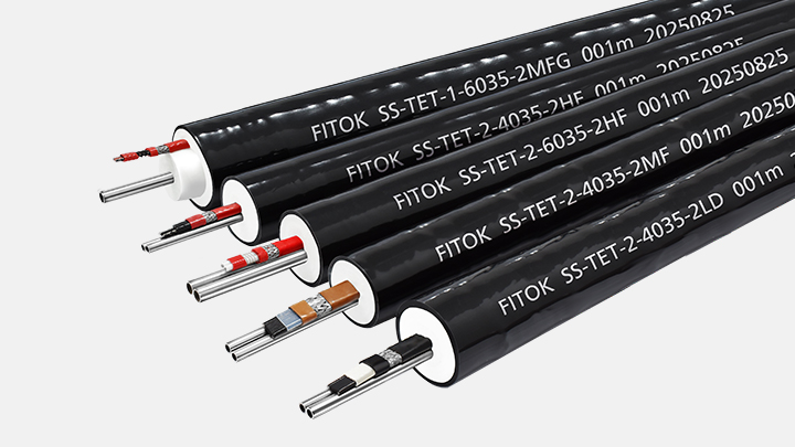 TET 系列为电伴热管,可以确保流体系统中的温度保持恒定。电伴热管由电伴热带和导压管组合而成,电伴热带分为低温、中温、高温三种类型,最高持续暴露温度可达 230℃;导压管采用不锈钢或紫铜材质制造,具有耐腐蚀性和优异的耐热性,并且确保伴热效果稳定,导压管尺寸为 6 mm 至 12 mm 或 1/4" 至 1/2"。低温、中温电伴热带一盘最长 305 m,高温电伴热带一盘最长 230 m;成品管 6 m 以上默认以盘管状态发货,6 m 及以下默认以直管状态发货。电伴热管供货长度可根据需求提供,但需要考虑电伴热带最大长度。